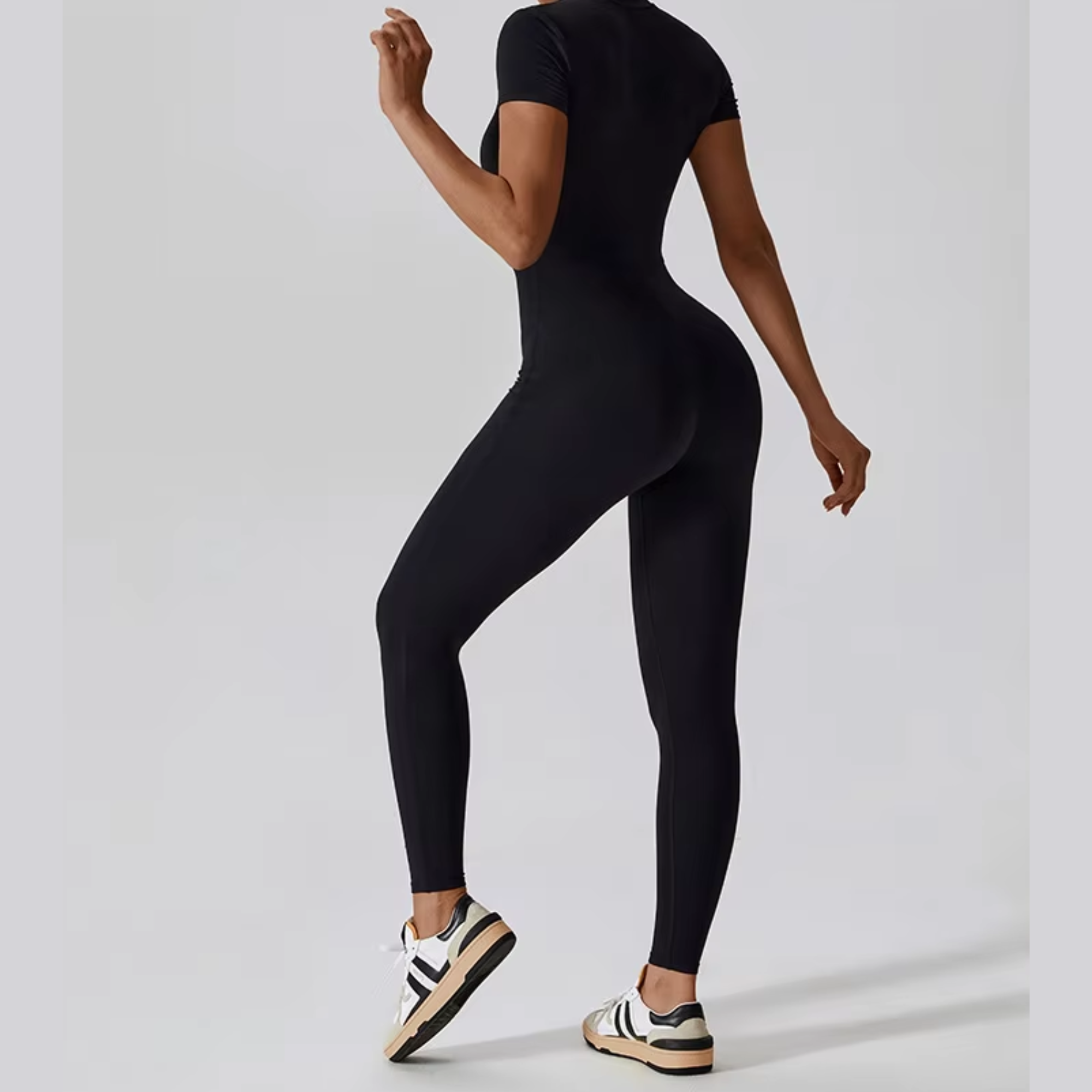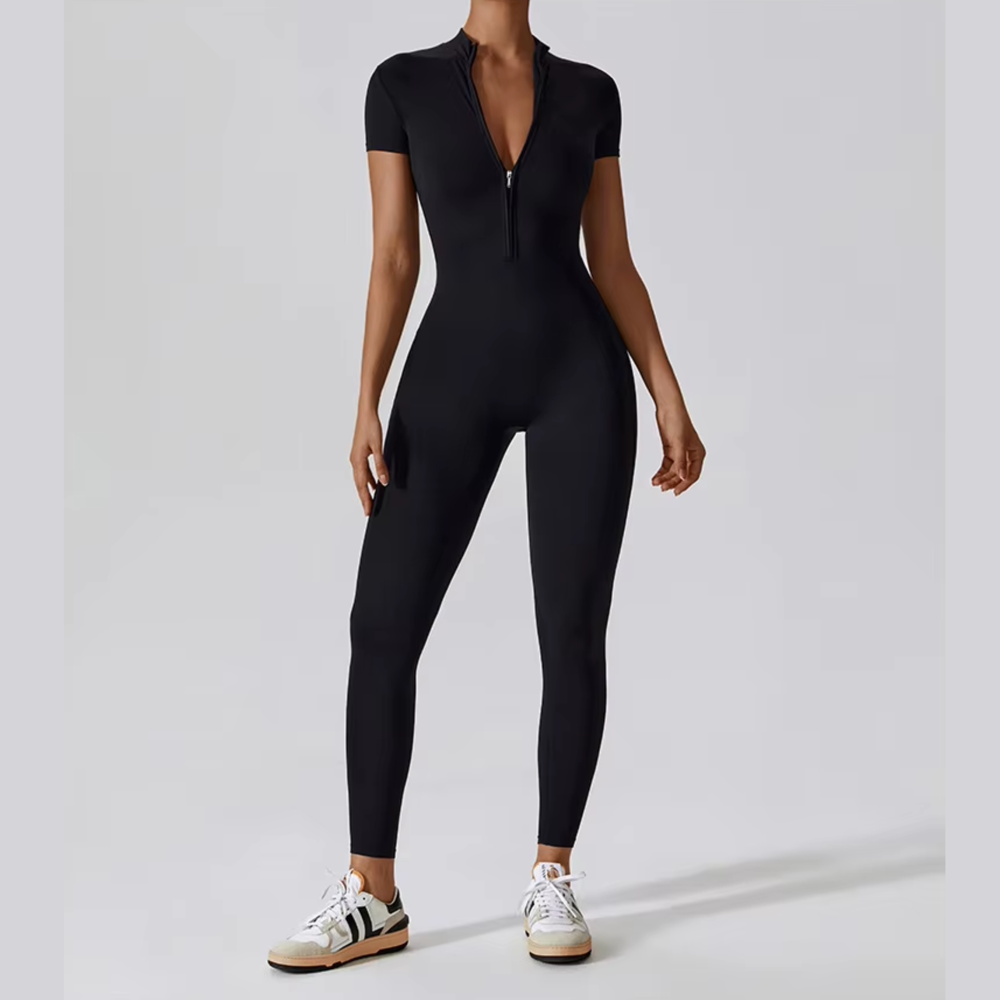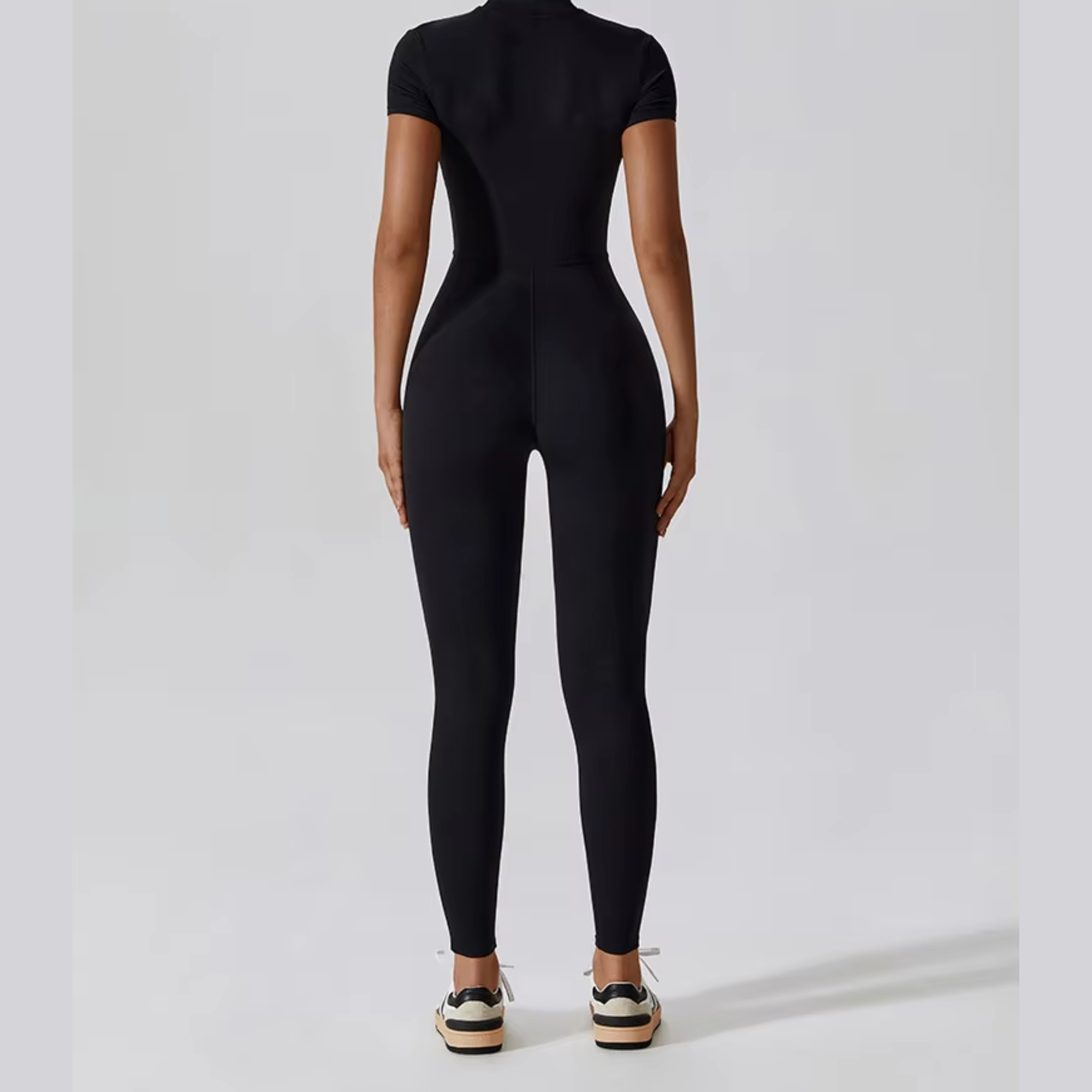 Introducing the Women's Activewear Mock Neck Jumpsuit. a perfect fusion of comfort and style. This jumpsuit is crafted from anti-wrinkle fabric. ensuring a crisp look all day long. Breathable materials provide ventilation during intense workouts. while the push-up design offers flattering support. Whether you're heading to a spin class or running errands. this versatile jumpsuit keeps you looking chic and feeling confident. Upgrade your activewear collection with this must-have piece that delivers both function and fashion.
